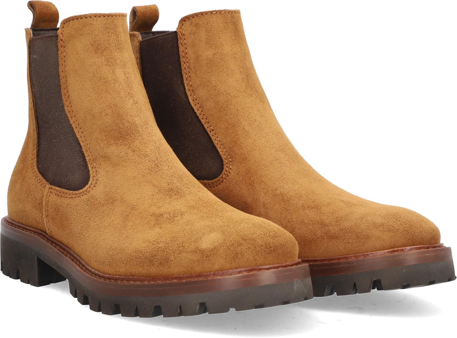 Bota para mujer ALPE MILITARE, fabricada en piel (baby silk) de color cuero con tacón de 3,5 cm, suela antideslizante y puntera redonda, sin cierre y caña baja.