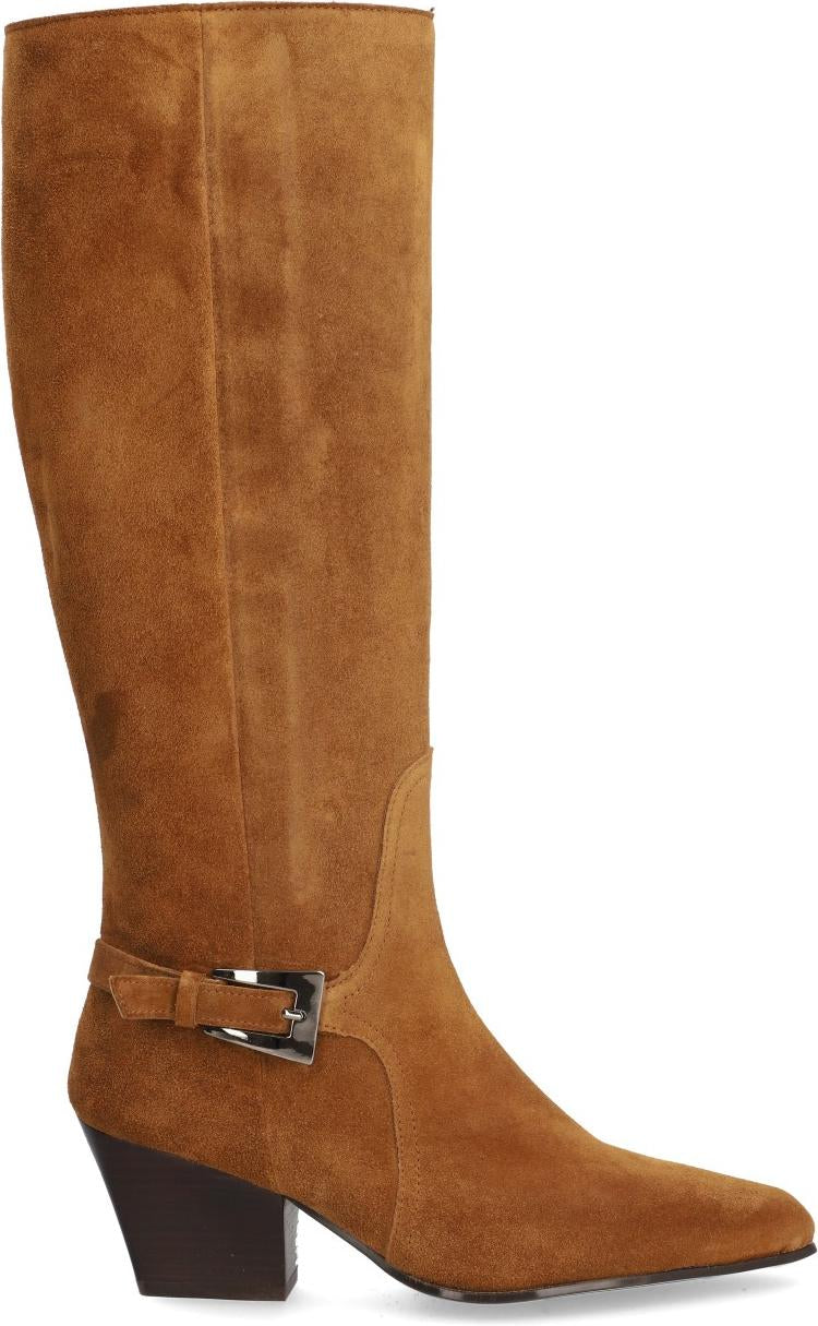 Bota para mujer ALPE INDIANA, fabricada en piel (baby silk) de color cuero con tacón de 4,5 cm, suela antideslizante y puntera afilada, con cierre mediante cremallera y caña alta.