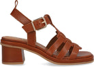 para mujer ALPE SENA fabricado en piel (ball lux) de color gamo con tacón de 5 cm, suela antideslizante y puntera cuadrada, con cierre mediante hebilla .