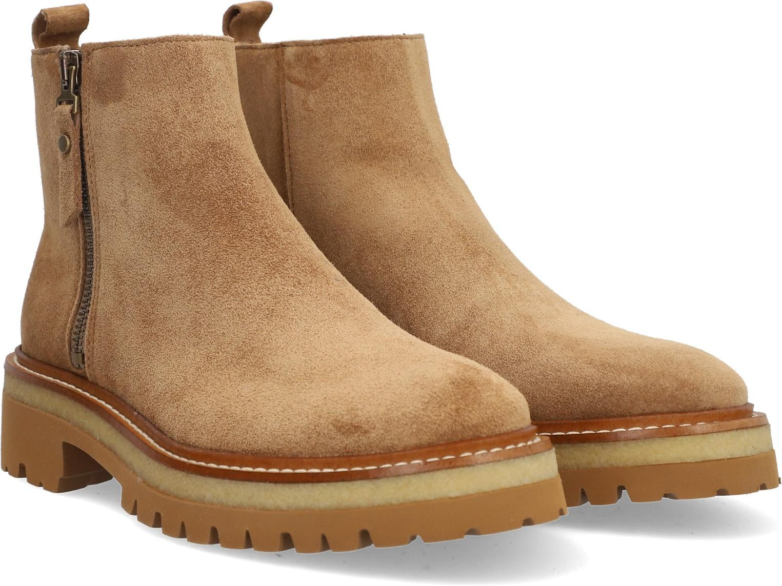Botín para mujer ALPE NORDIC, fabricado en piel (baby silk) de color taupe con tacón de 3,5 cm, suela antideslizante y puntera redonda, con cierre mediante cremallera y caña baja.