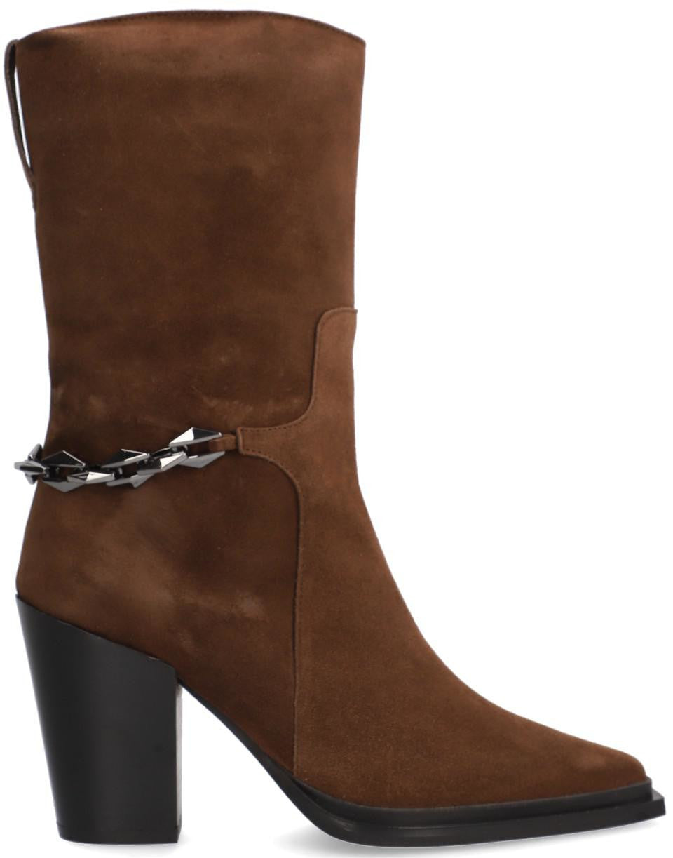 Botas para mujer Alpe Woman, fabricada en piel de color TAN con tacón de 8 cm, suela antideslizante y puntera afilada, con cierre cremallera y cana Composición exterior: Piel Composición interior: Textil Plantilla: Textil