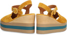 Sandalia para mujer ALPE KENYA, fabricada en piel (baby silk) de color mostaza con plataforma de 9 cm, suela antideslizante y puntera redonda, con cierre mediante hebilla.